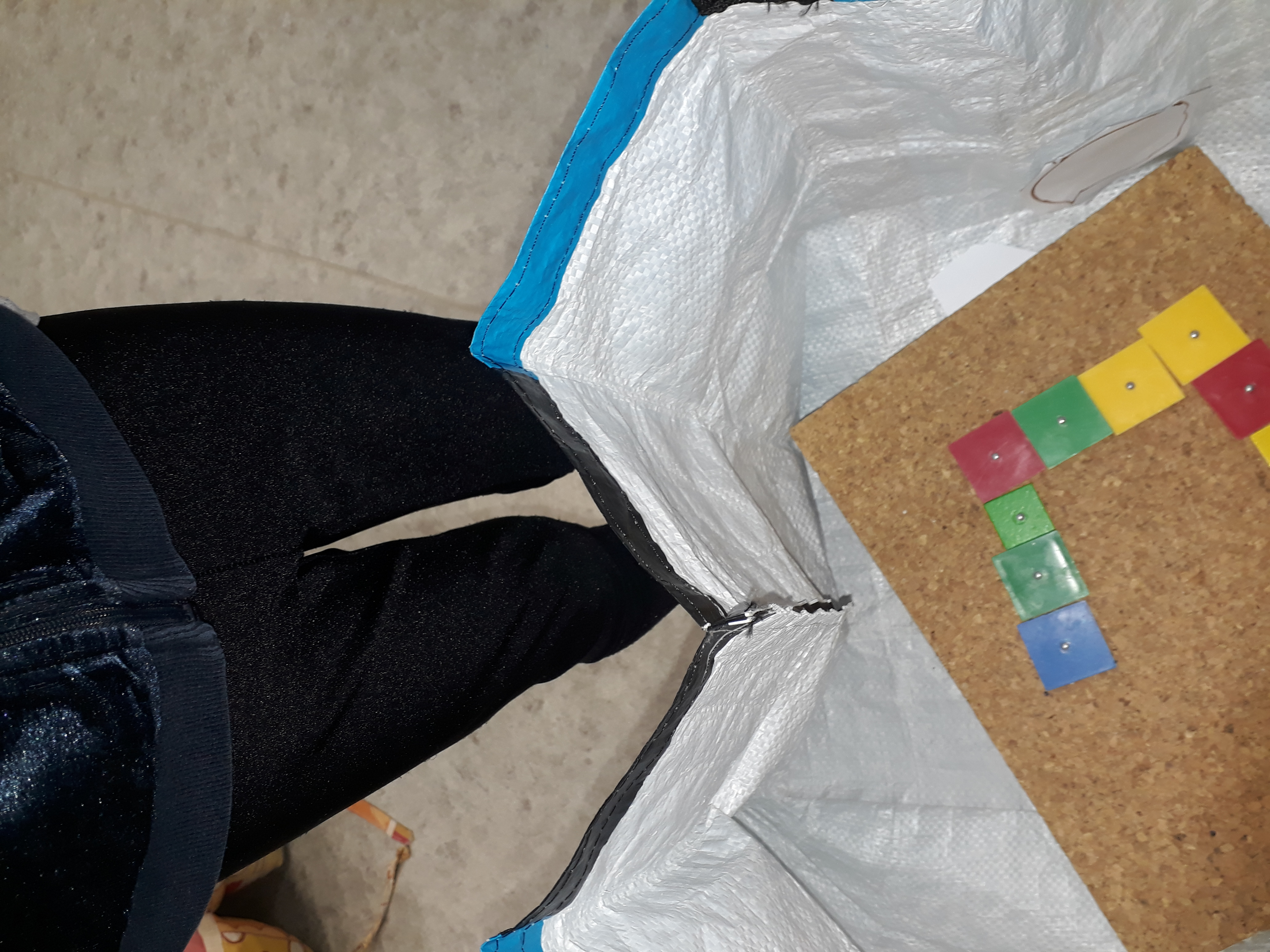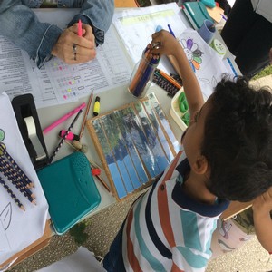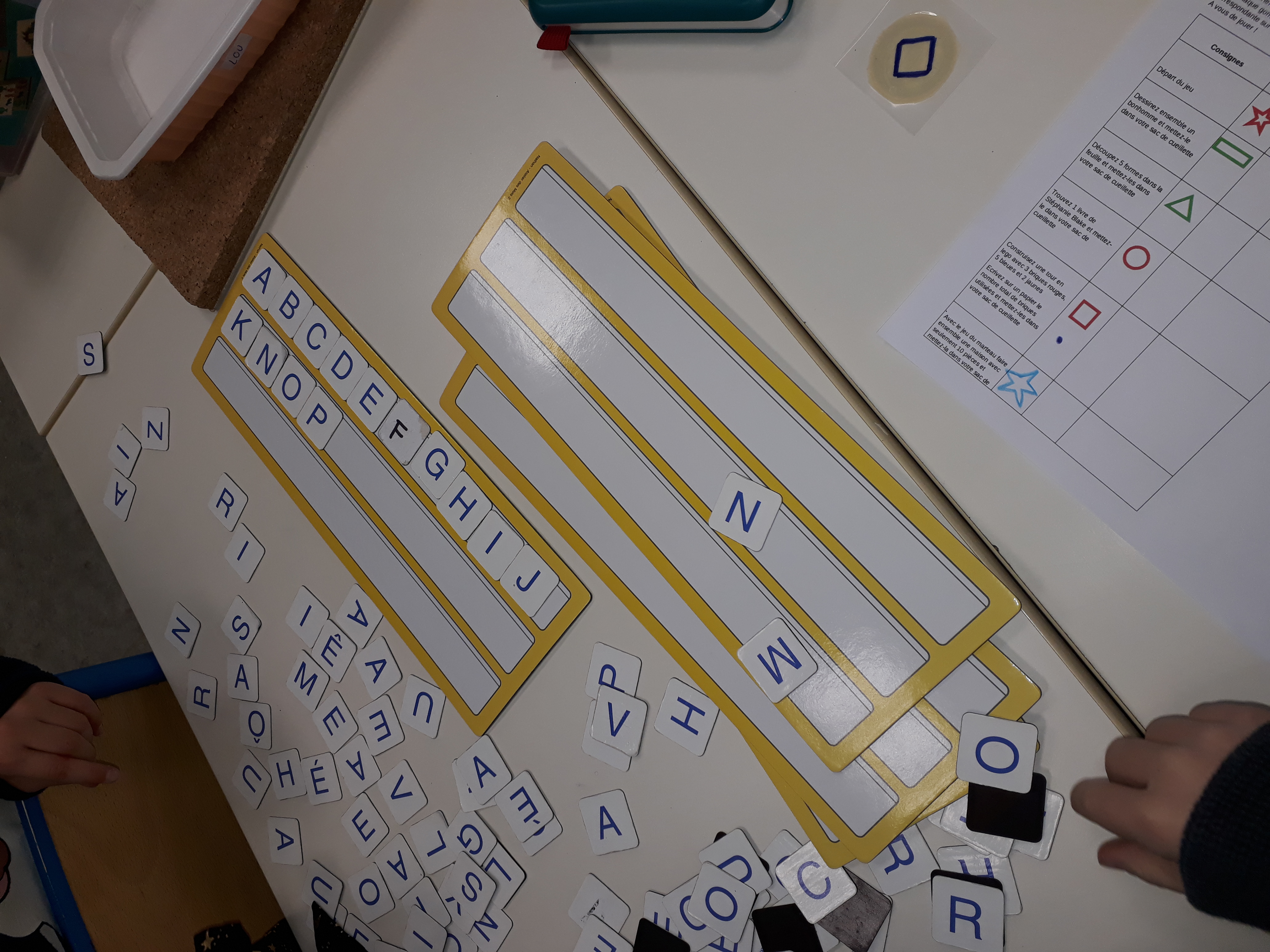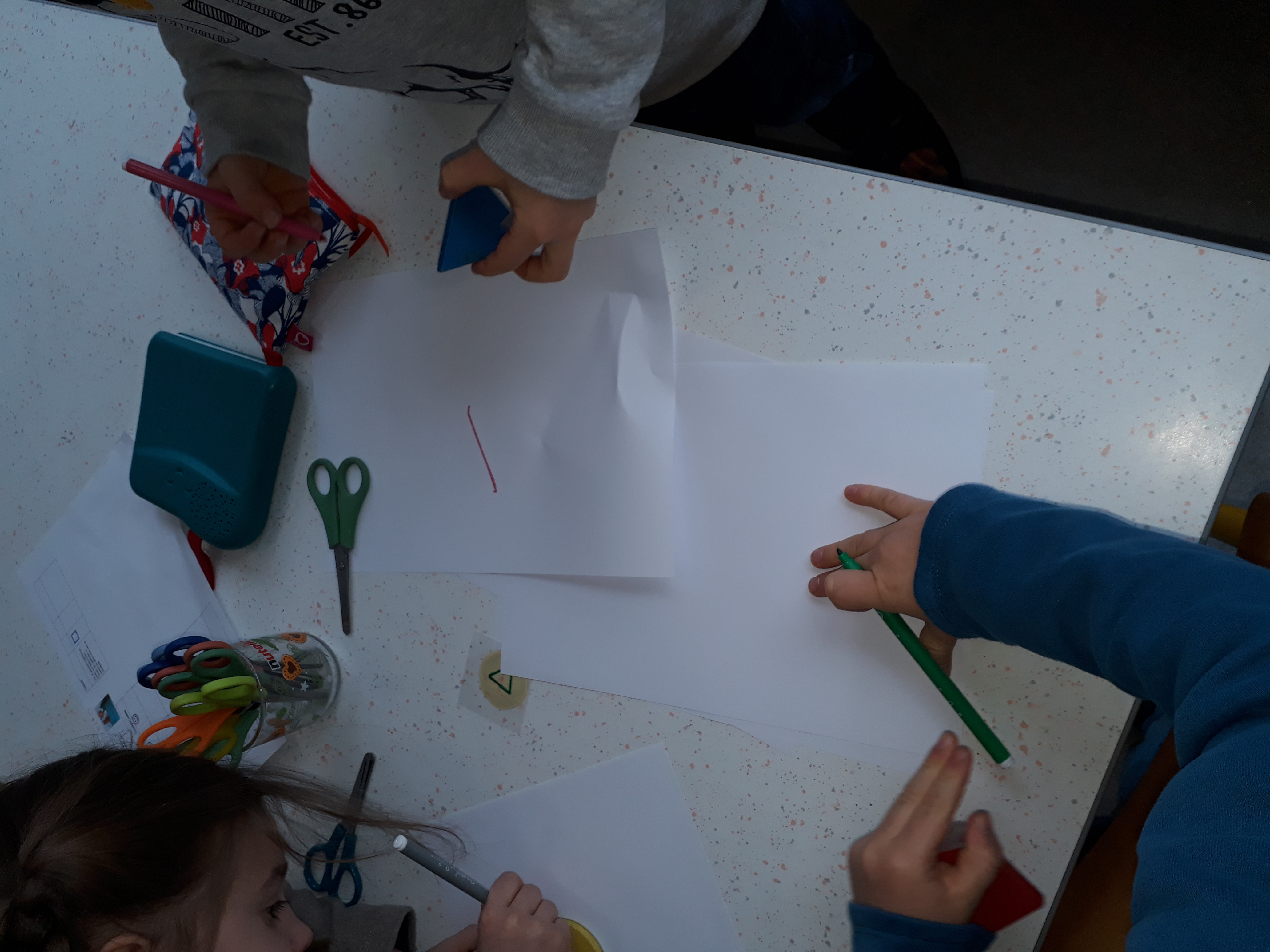 Par groupe de 3 ou 4, il faut tirer une forme puis partir à la recherche de la gommette ayant la même forme. Avec la liseuse, écouter cette gommette (consigne orale) et réaliser la tâche demandée. Revenir à la table de marque pour valider et compléter sa feuille de marque.