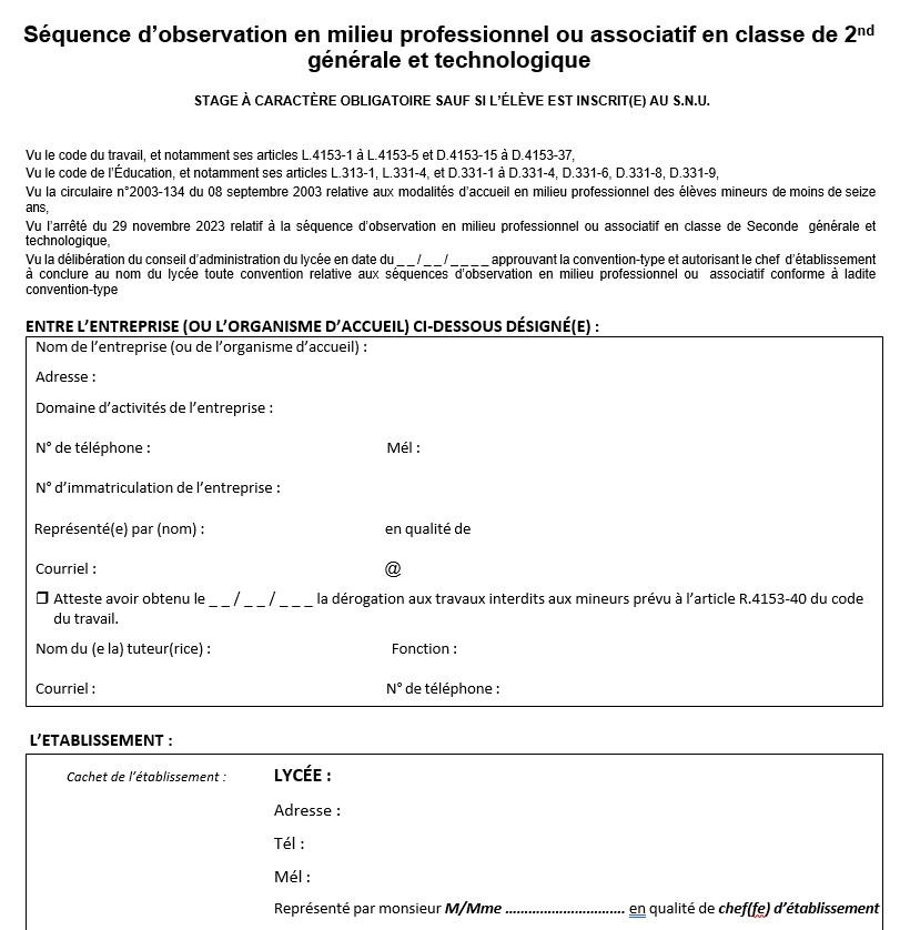 Convention stage de seconde