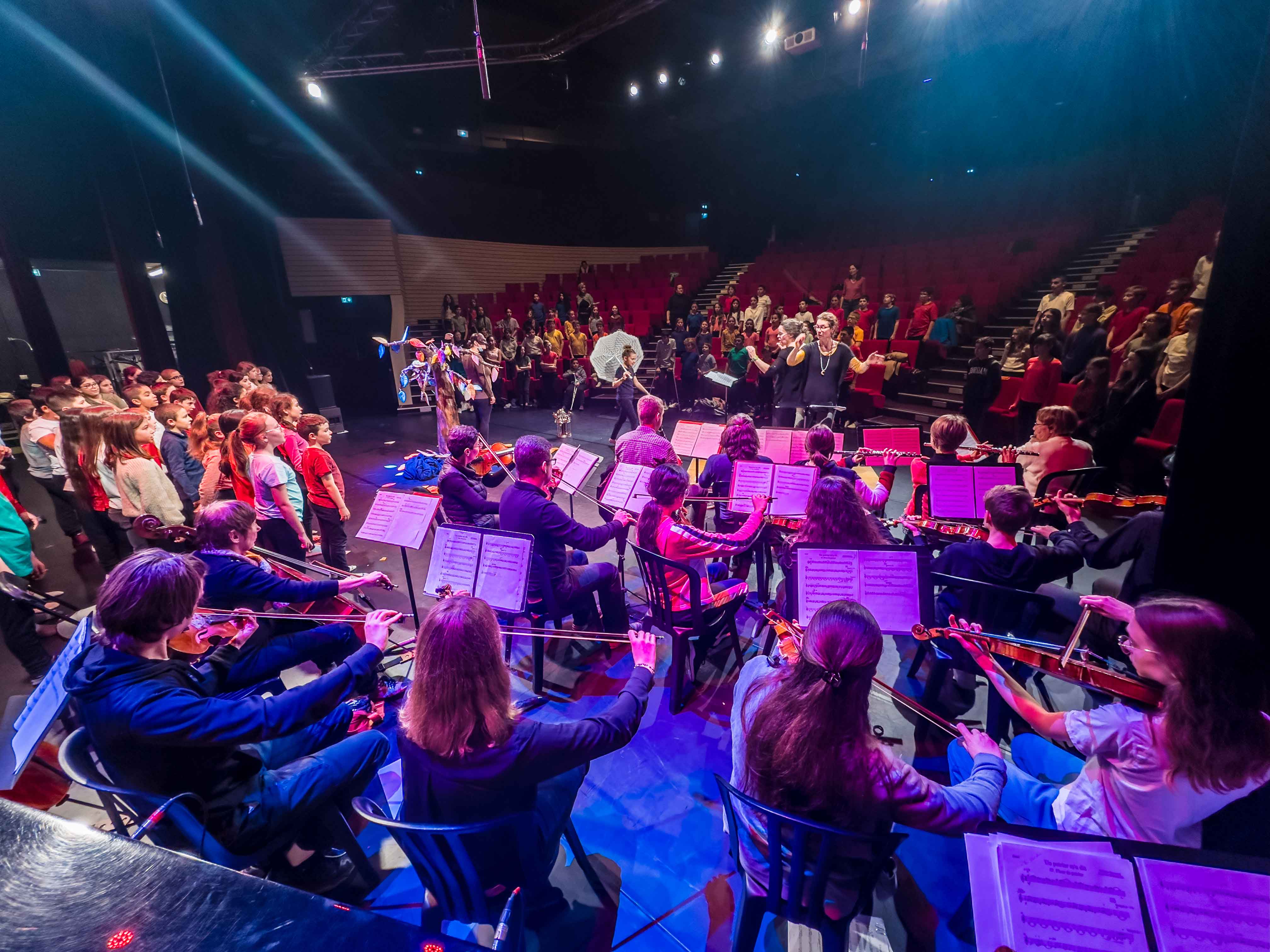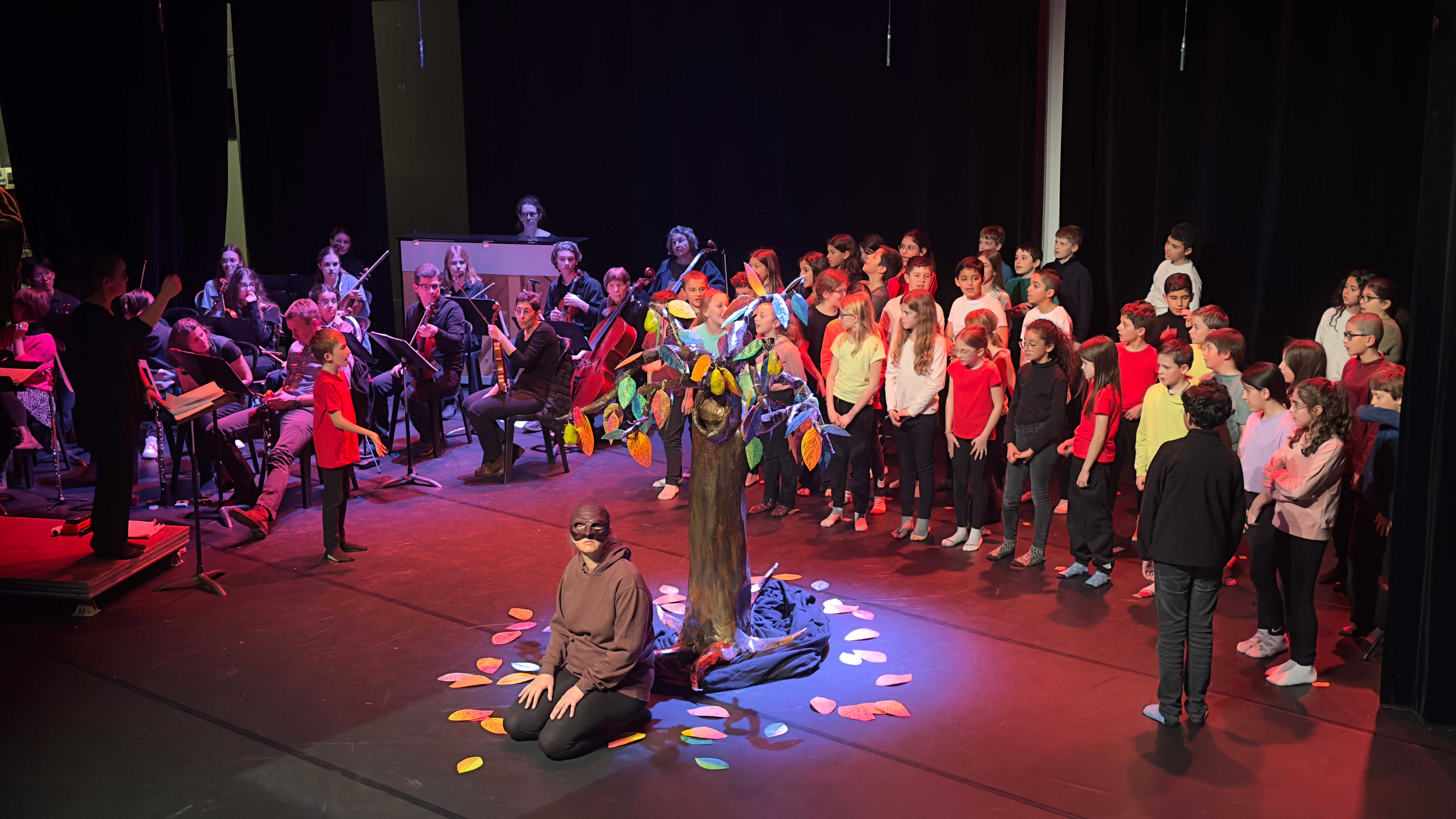 Deux spectacles ont eu lieu le 13 février, au Théâtre en rond à Sassenage. 5 classes étaient réunies (2 CM1-CM2 de l'Ecole des Pies, 1 CM1-CM2 de l'Ecole Hameau du Château et 2 classes de 6ème du collège Fleming) pour chanter, accompagnés par l'orchestre du Conservatoire de Sassenage et des comédiens de l'Association de théâtre La Cité (de Sassenage).