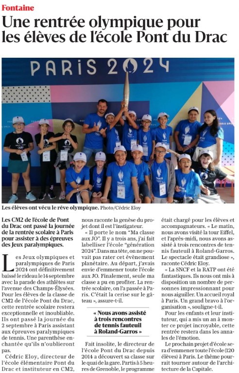 La classe de CM2 de Monsieur Eloy à l'école Pont-du-Drac a fait sa rentrée à Paris pour assister à des épreuves de tennis fauteuil à Rolland-Garros pendant les jeux paralympiques.